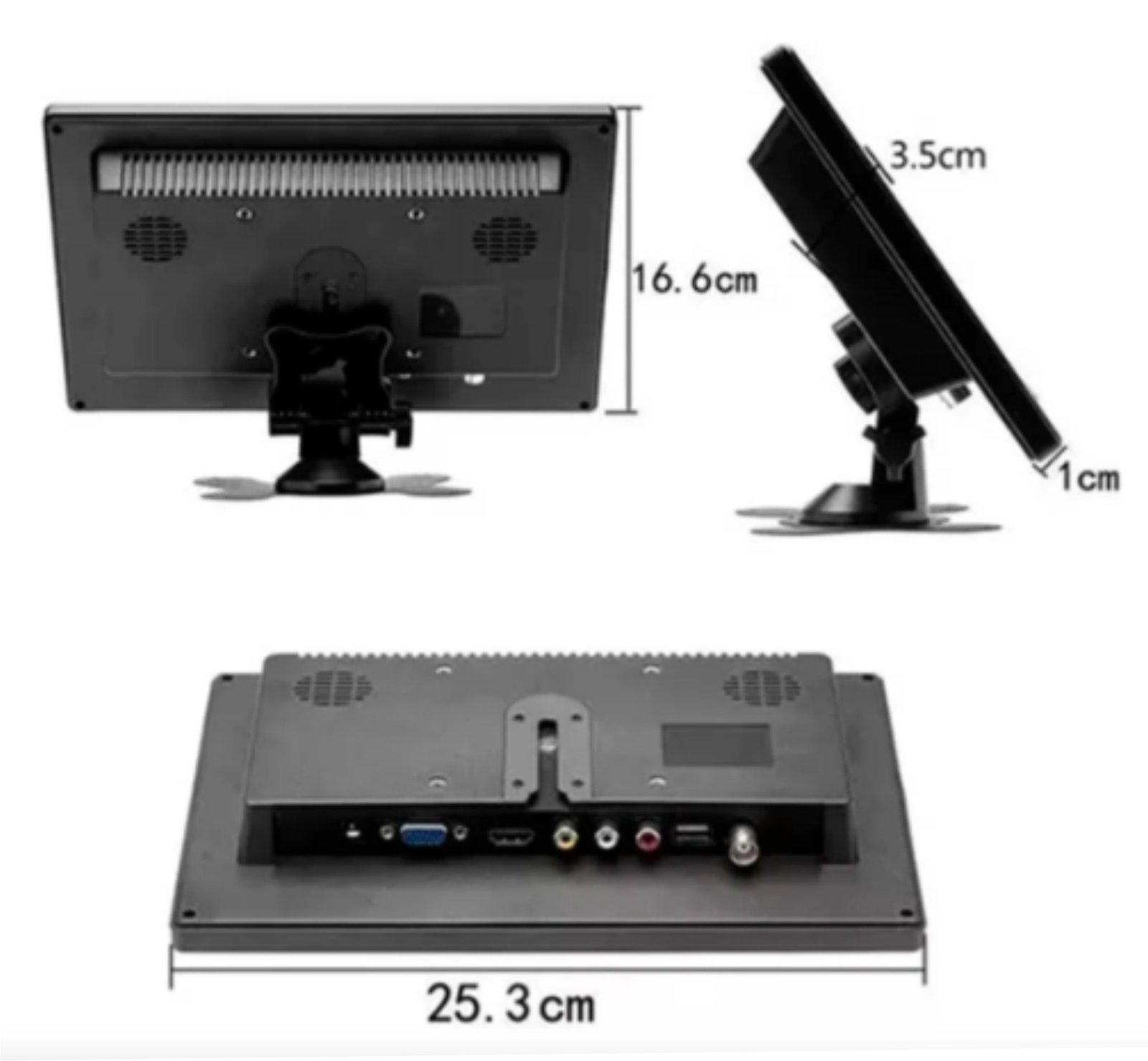 Tela Monitor Lcd 10.1 Colorida Controle Hdmi Vga Av usb Características do produto Monitor lcd de 10 polegadas Colorido Alta resolução de imagem Opção de girar a tela Proporção da tela 16:9 / 4:3 ajustável Brilho / contraste / cor ajustável Maneiras de instalar: painel Baixo consumo de energia Possui uma entrada hdmi / vga / usb Acompanha controle remoto Especificações do produto: Tamanho da tela: 10.1 polegadas Tela: Colorida lcd Número de pontos: 800(w)xRGBx480(H)/480(w)xRGBx234(H) Relação de Contraste: 100:1 Frequência de vídeo: pal / ntsc Saída: dc 12V/24V Consumo de energia: cerca de 6W Vídeo: duas entradas de vídeo Cor: Preto Itens inclusos: 01 x Monitor lcd 10.1 polegadas 01 x Suporte para painel 01 x Controle remoto 01 x Cabo vga 01 x Fonte 12V 1A 01 x Manual do usuário (inglês)