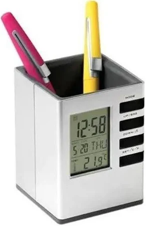 Se você busca um item que una estilo e funcionalidade, o Relógio Digital Temperatura Porta Caneta Calendário em Cor Prata é a escolha ideal. Ele não apenas cumpre a função de despertador, mas também agrada aos amantes de uma decoração contemporânea, tornando cada momento mais prático e elegante.